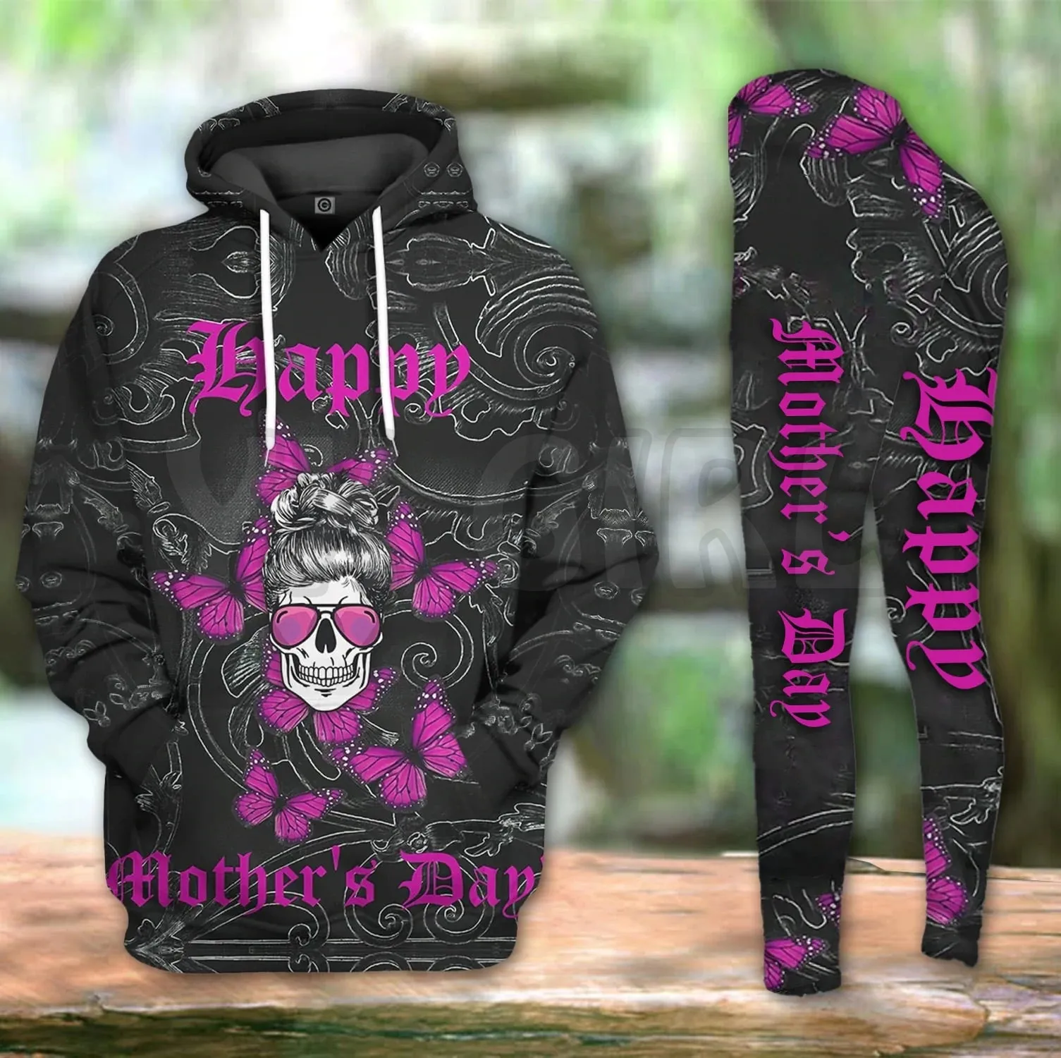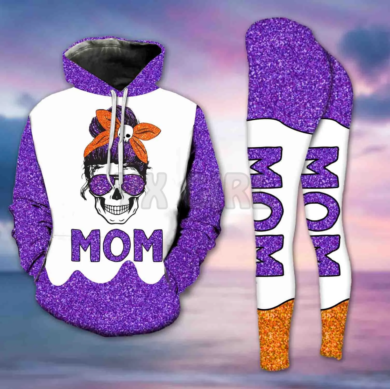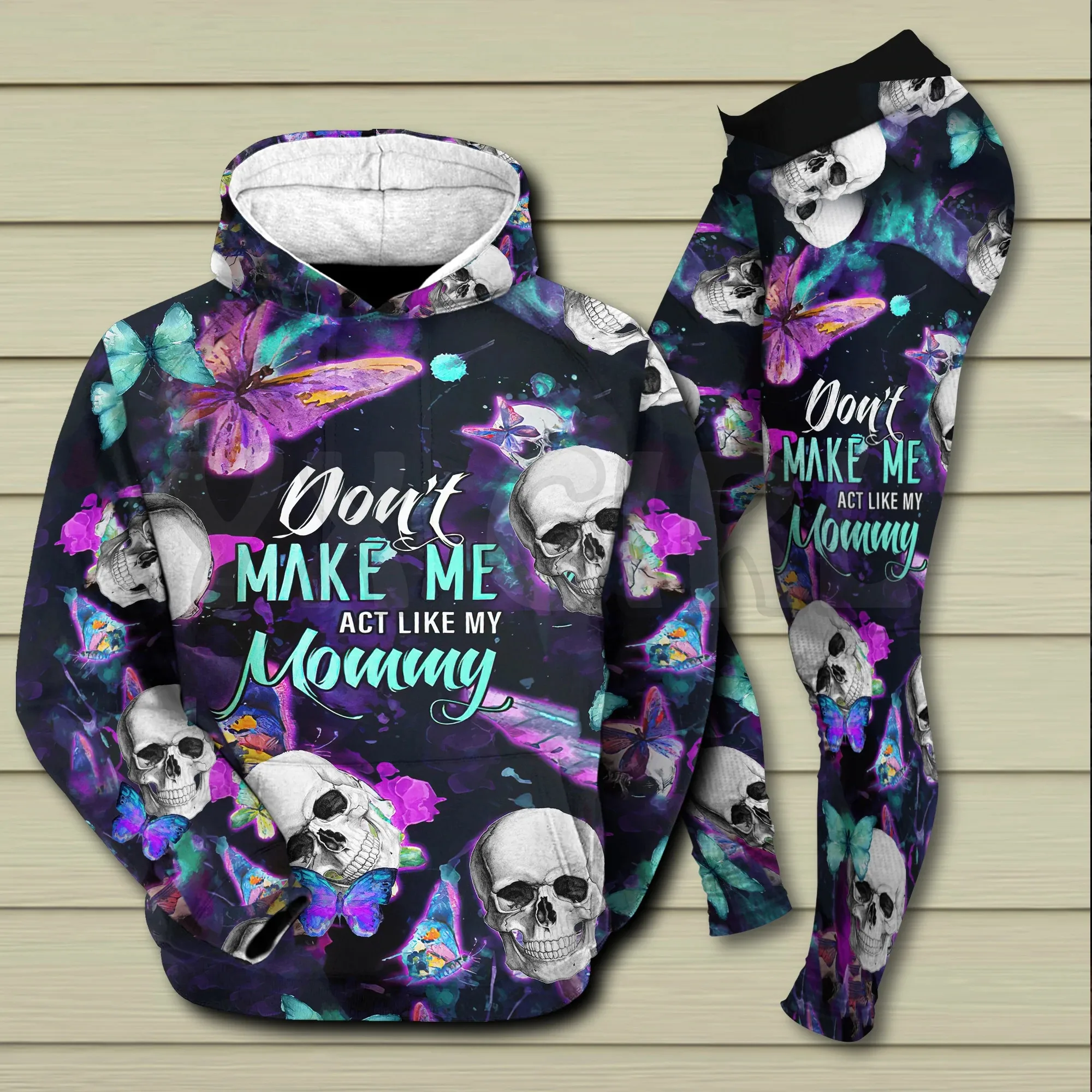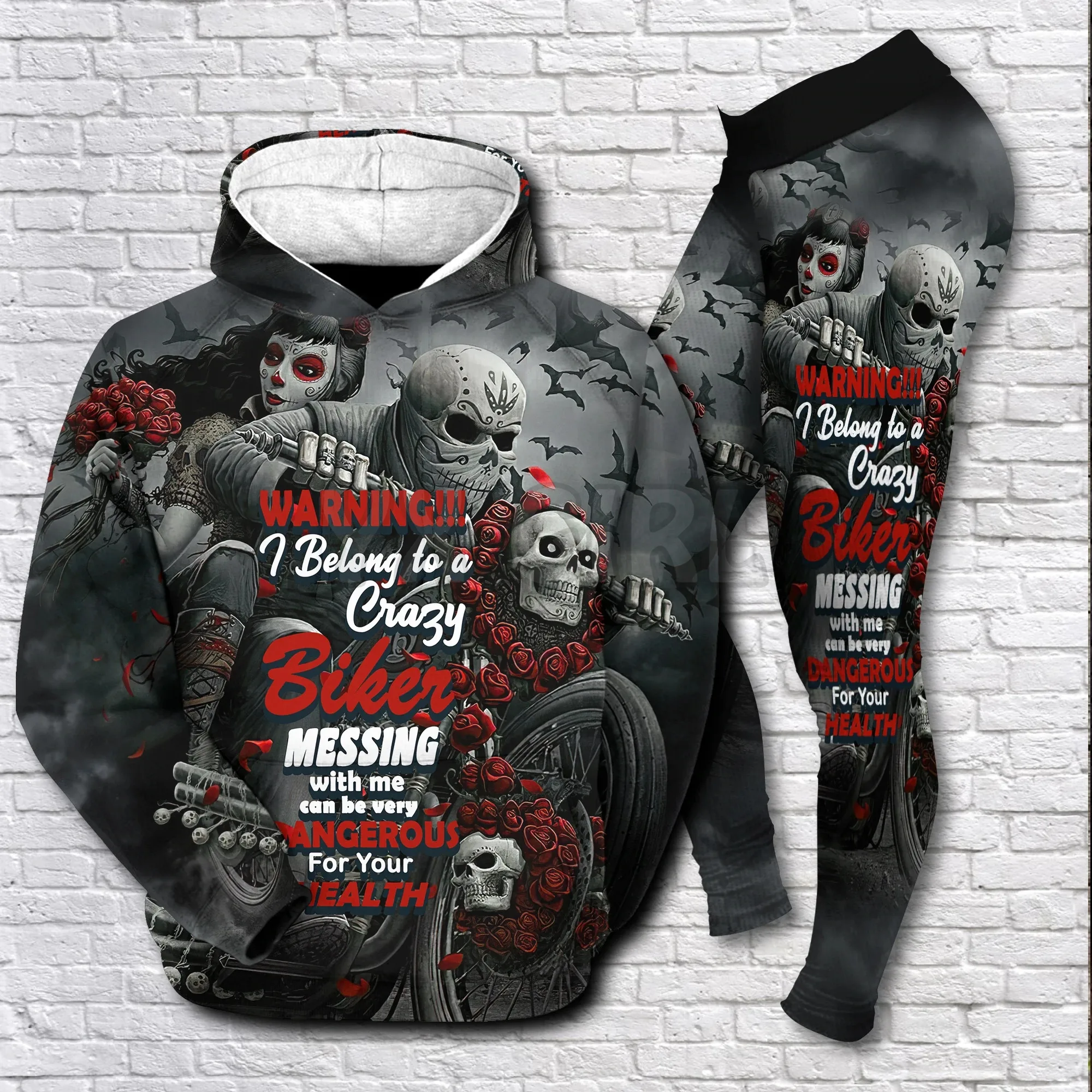 YX Girl Dragon Combo Hoodie + Legging  Combo Outfit Yoga  Crazy Biker Skull 3D Printed Apparel