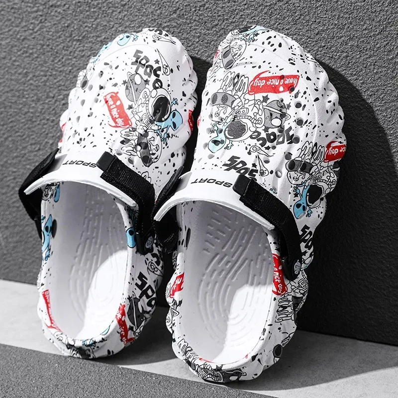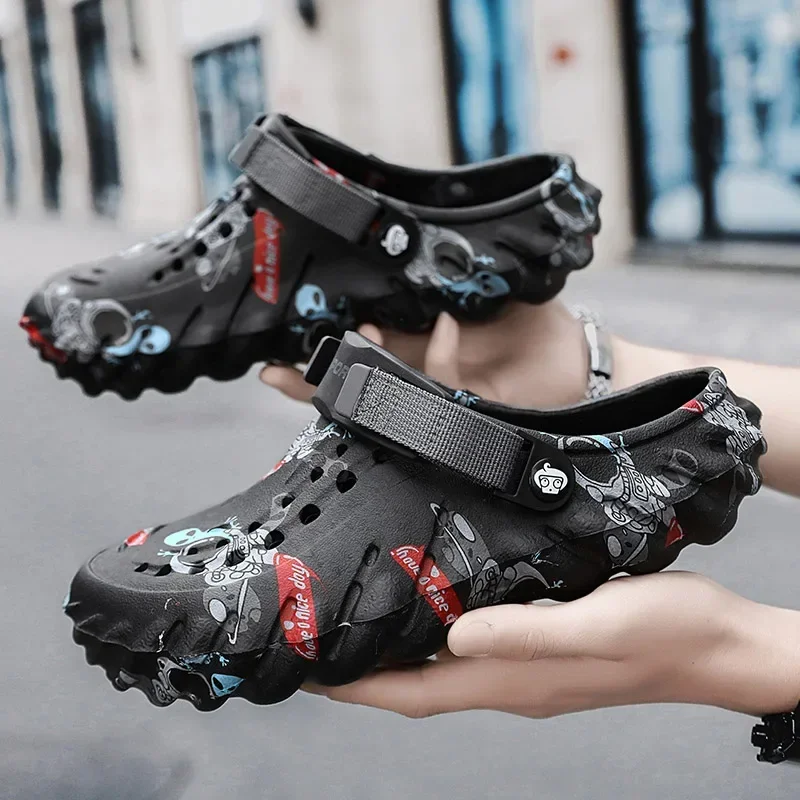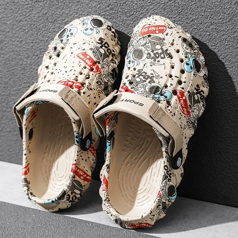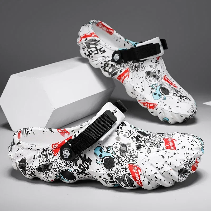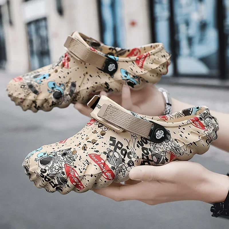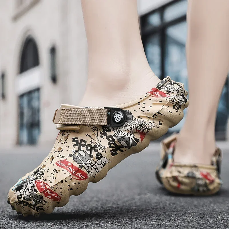 YRZL Sandals Mens Summer Shoes Graffiti Non-slip Wear-resistant Sandal Comfortable High Quality Beach Outdoor Slippers for Men