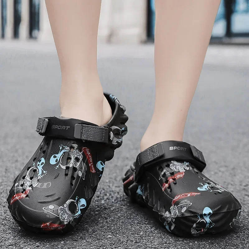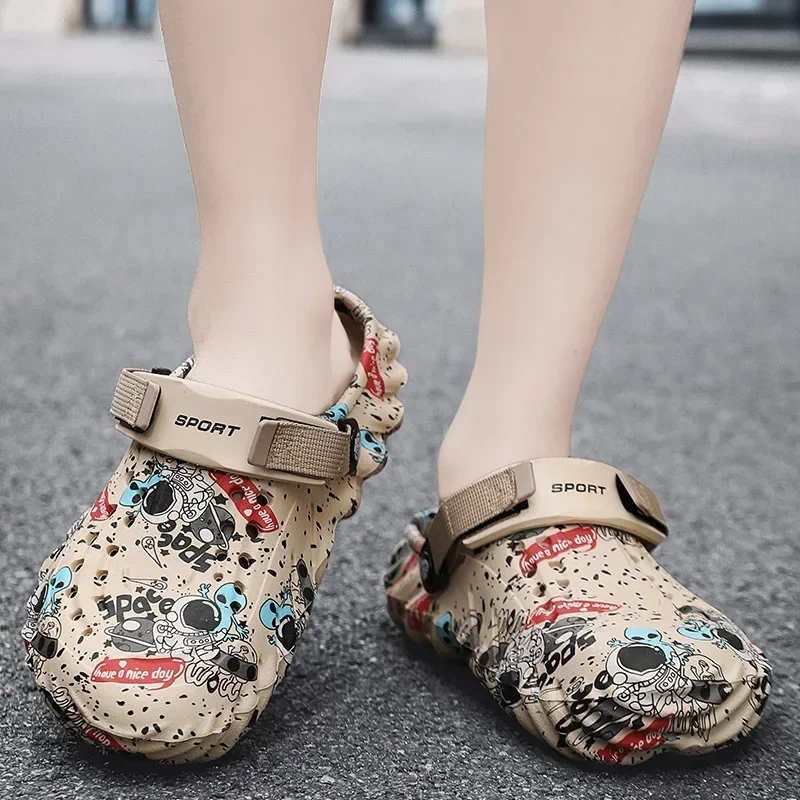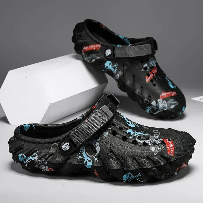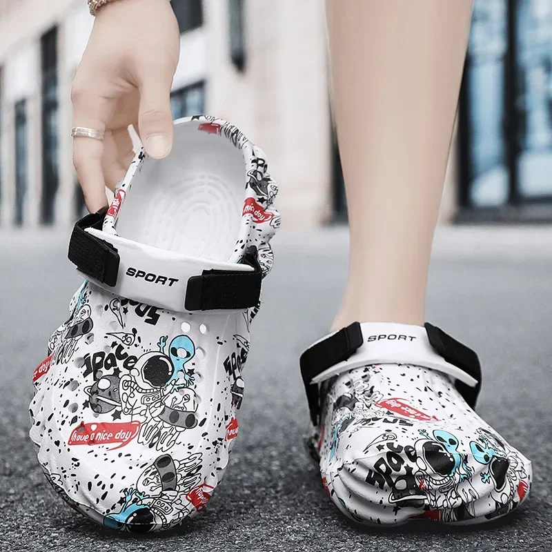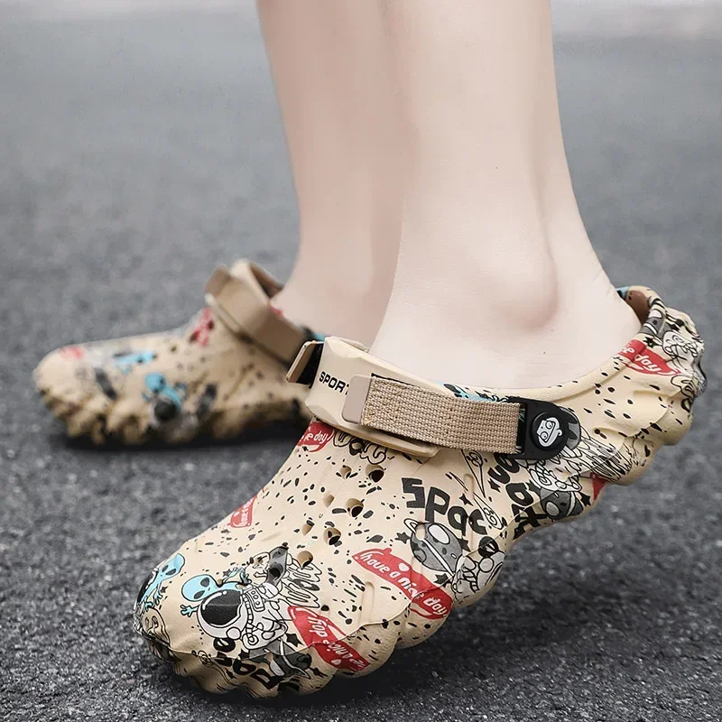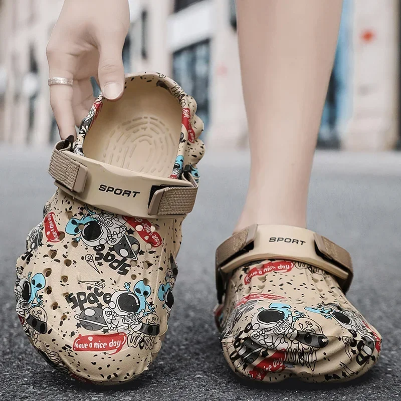 YRZL Sandals Mens Summer Shoes Graffiti Non-slip Wear-resistant Sandal Comfortable High Quality Beach Outdoor Slippers for Men